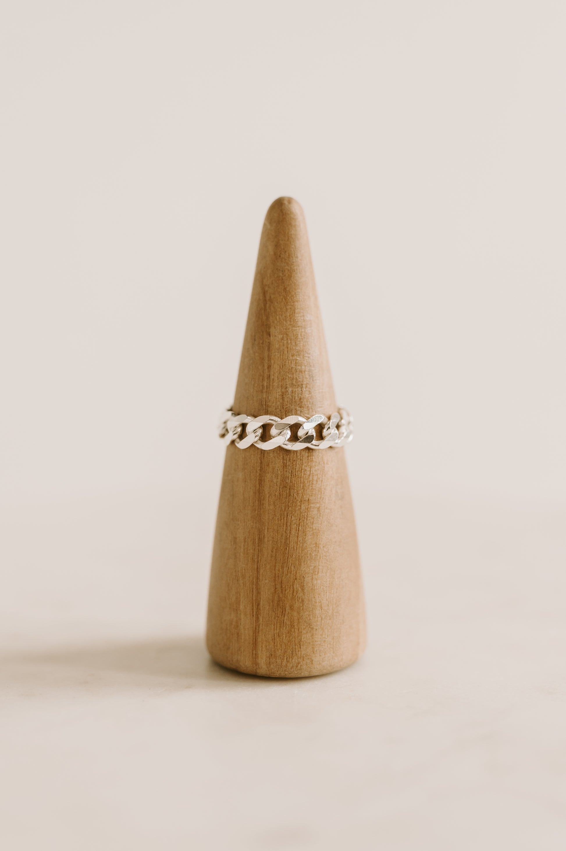 Add a little spice to your finger with our Curb Chain Ring. This ring is flexible, not rigid.