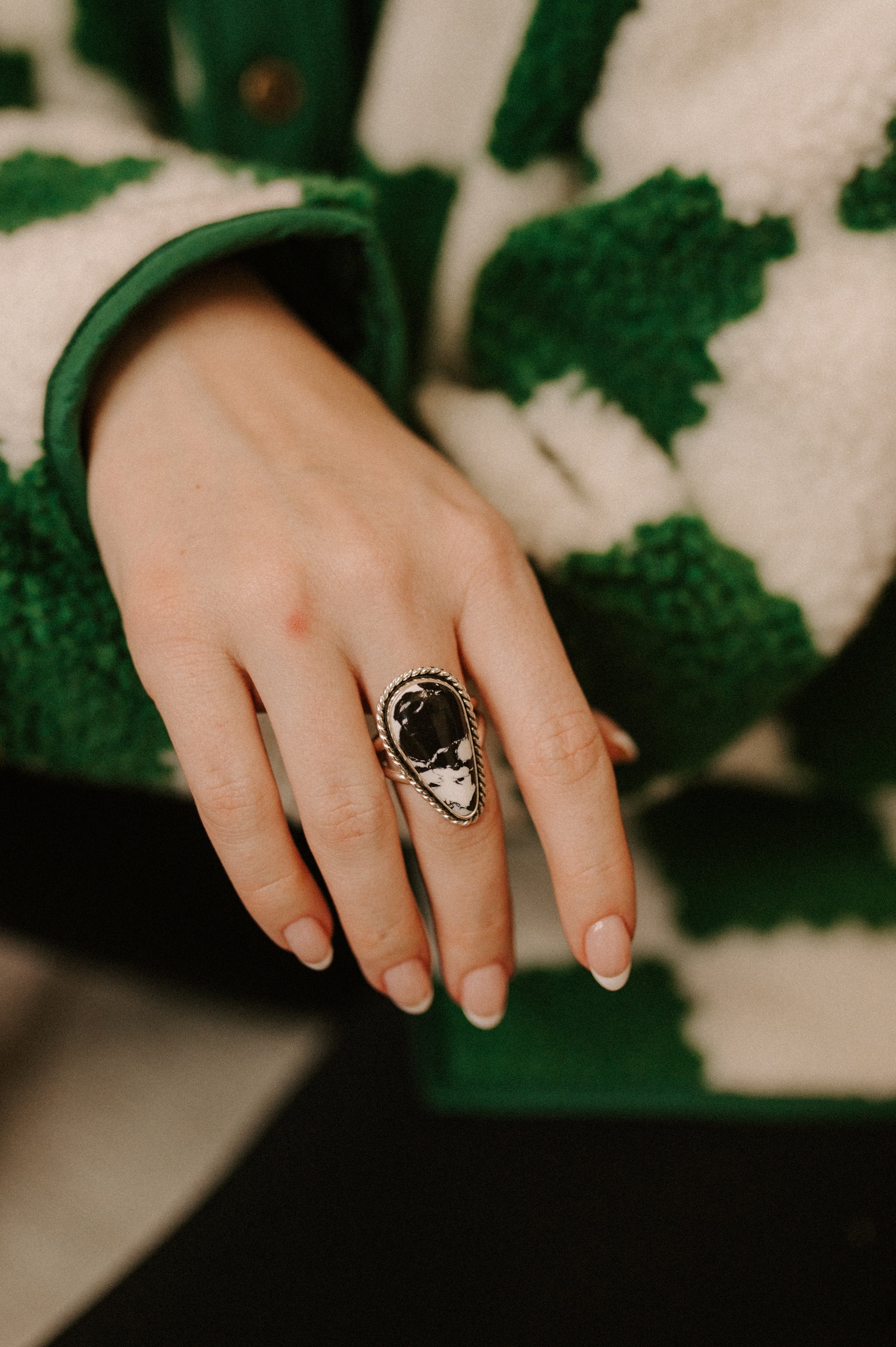 White Buffalo Turquoise Ring - Size 10